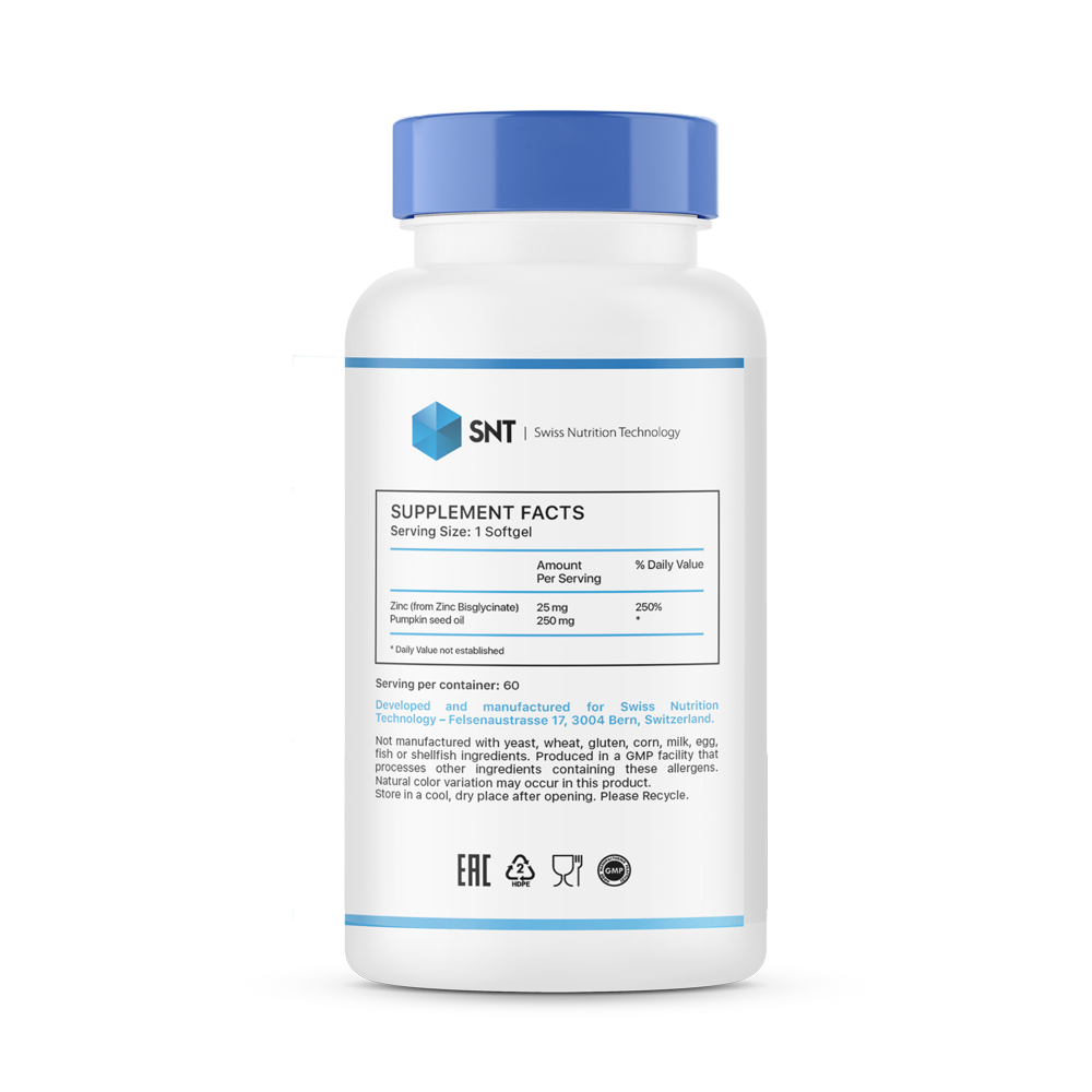 Цинк - это микроэлемент, который содержится практически в каждой клетке тела и входит в состав более 200 ферментов. Цинк особенно важен для нормальной работы иммунной системы, поддержки роста здоровых клеток, здоровья кожи, простаты и репродуктивного здоровья, а также для обоняния, вкуса и зрения.