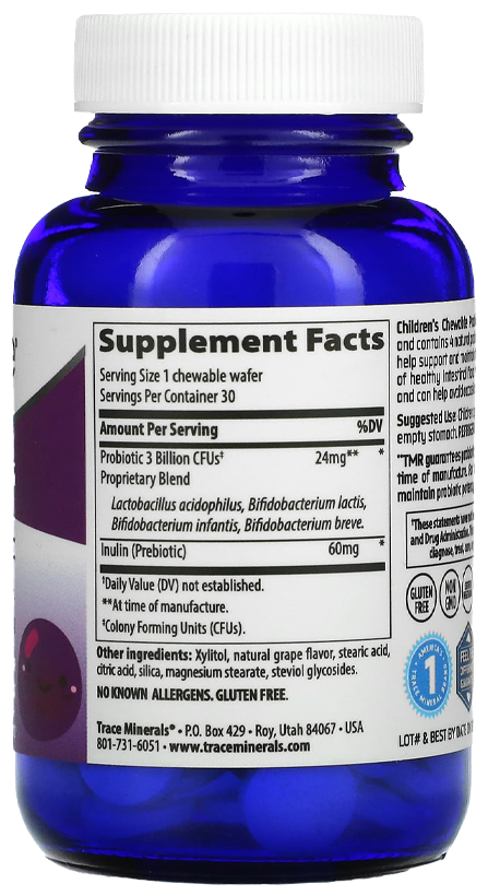 Жевательный пробиотик для детей составлен специально для детей и содержит 4 натуральных штамма пробиотиков - дружественных и жизнеспособных организмов, способствующих поддержанию и сохранению здорового баланса кишечной флоры. Баланс здоровой кишечной флоры помогает поддерживать иммунитет и позволяет избежать случайного несварения или расстройства желудка.