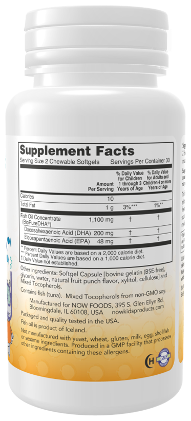 NOW DHA Kid's Chewable Fruit-Flavor, 60 капсул
