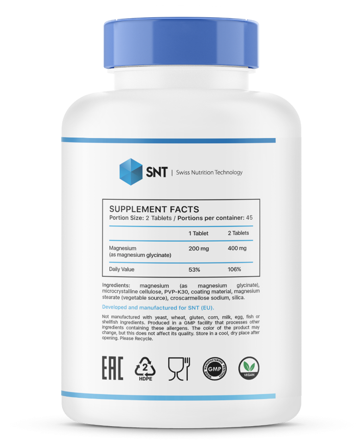 Magnesium Glycinate - это препарат магния, который обладает высокой биодоступностью и хорошо переносится организмом. Дополнительный прием поможет вам нормализовать сердечный ритм, снизить АД, купировать судороги в мышцах, повысить жизненный тонус и настроение, умственную и физическую активность, уменьшить боли в суставах.