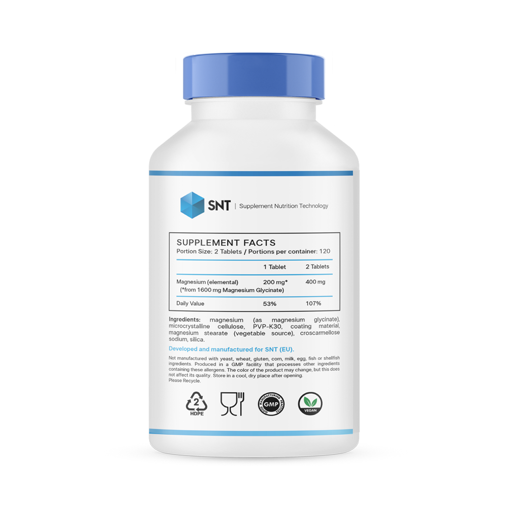 Magnesium Glycinate - это препарат магния, который обладает высокой биодоступностью и хорошо переносится организмом. Дополнительный прием поможет вам нормализовать сердечный ритм, снизить АД, купировать судороги в мышцах, повысить жизненный тонус и настроение, умственную и физическую активность, уменьшить боли в суставах.
