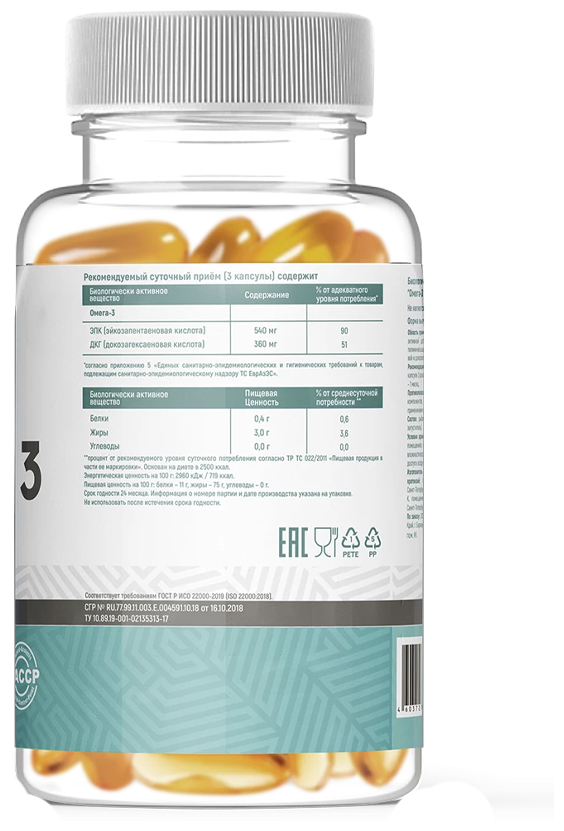 Омега-3 - это полностью натуральная добавка с широкой доказательной базой. Вы получаете высококачественный рыбий жир, который прошел многоуровневую очистку и был помещен в удобные желатиновые капсулы. Никаких синтетических ингредиентов в составе. Он отлично усваивается и полностью покрывает потребности организма в ненасыщенных жирных кислотах.