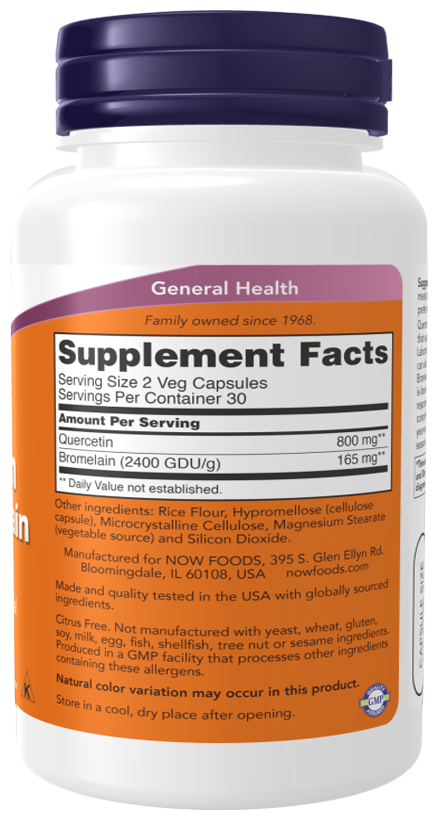 Quercetin with Bromelain - это насыщенный питательный комплекс. В его основе мощный биофлавоноид, полученный Софоры японской, и комплекс ферментов из стебля ананасов. Компоненты действуют в синергии и быстро метаболизируется в организме.