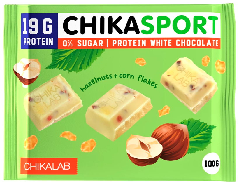 Вкусный молочный шоколад с высоким содержанием белка. Сахара в шоколаде Chikalab нет. Вместо него в продукции в качестве подсластителя используются кукурузное волокно и сукралоза. Кукурузное волокно - это пищевое волокно - сладкая клетчатка, которая укрепляет кости.