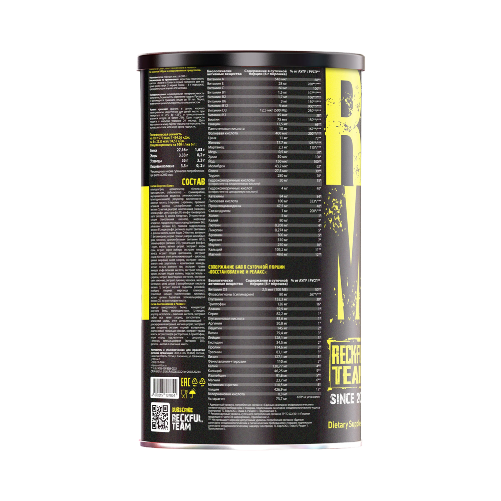 Комплекс из витаминов, минералов, аминокислот, растительных экстрактов, электролитов и антиоксидантов. Монстер Пак в порошке - это мощная комплексная мультивитаминная биодобавка, созданная специально для спортсменов и фитнес-энтузиастов. Мультивитамины для спорта содержат более 50 ингредиентов, включая поливитамины, минералы, аминокислоты, антиоксиданты, электролиты и другие пищевые добавки. За счет сбалансированного состава подходят как для мужчин, так для женщин. Спортивные мульти витамины Monster Pak также являются отличным выбором в качестве общеукрепляющих повседневных поливитаминов для здоровья, иммунитета, энергии и бодрости, для роста мышц и нервной системы.В совокупности все эти компоненты помогают улучшить общее здоровье и производительность, повышают уровень энергии, ускоряют восстановление после тренировок, укрепляют иммунную систему и обеспечивают оптимальную поддержку женского и мужского метаболизма.
