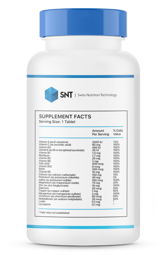 Данный комплекс витаминов и минералов позволяет поддерживать полноценные обменные процессы в организме, обеспечивая отличное состояние костной, нервной и иммунной системы, выработку энергии на клеточном уровне и поддержание хорошего самочувствия. Кроме этого, микронутриенты усиливают защиту и предотвращают развитие дегенеративных заболеваний.