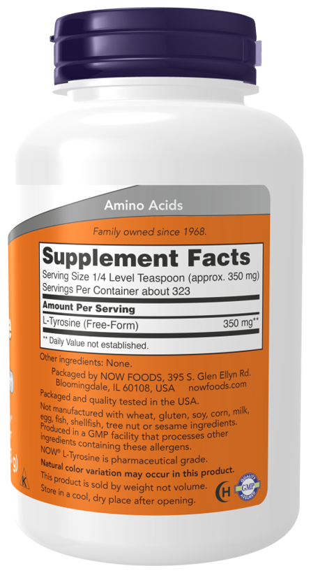 L-Тирозин является условно незаменимой аминокислотой, необходимой для производства нейромедиаторов дофамина, адреналина и норадреналина, а также для кожного пигмента, меланина. Норадреналин (норэпинефрин) и адреналин (эпинефрин) являются основными действующими механизмами в реакции организма на стресс и, наряду с дофамином, помогают поддерживать хорошее настроение и умственную активность. Кроме того, L-Тирозин особенно важен для нормального функционирования щитовидной железы.