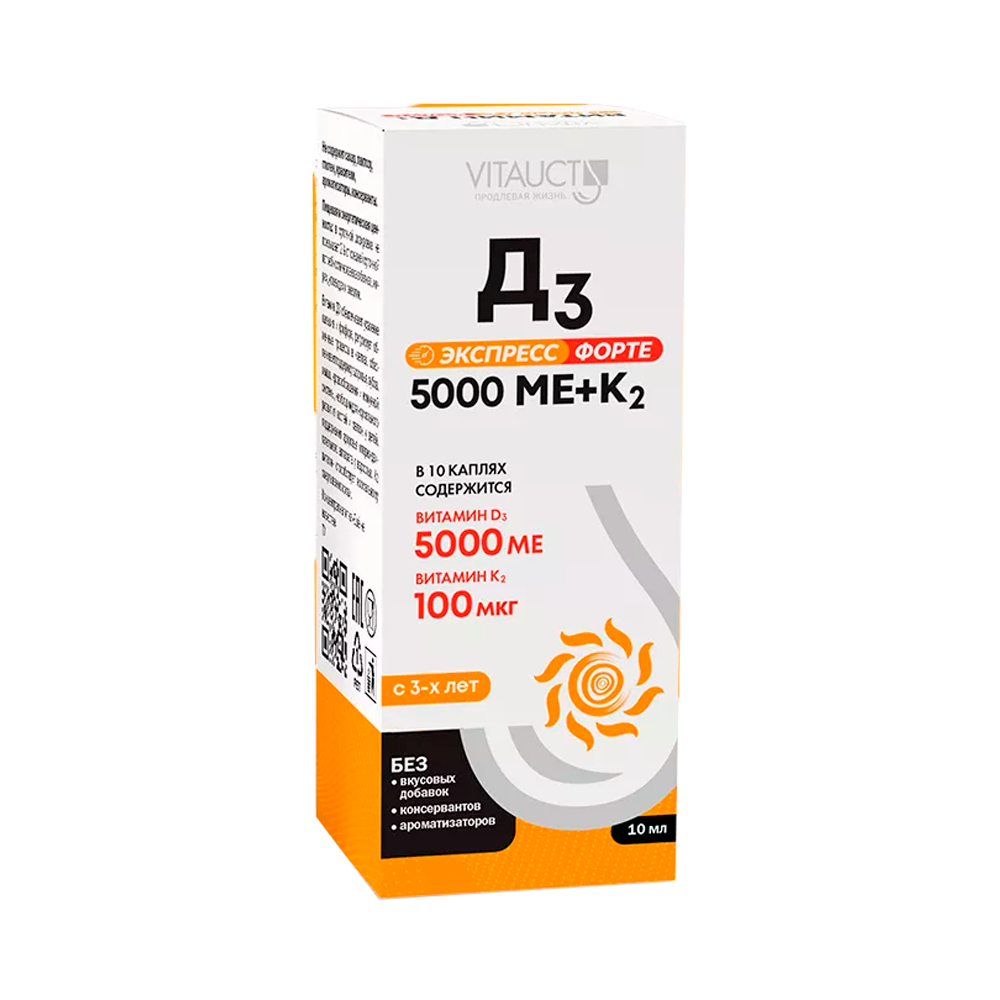 Vitauct Vitauct Д3 Экспресс Форте 5000 МЕ+K2, 10 мл