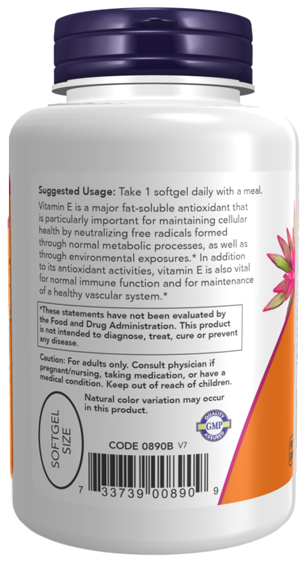 Витамин Е является основным жирорастворимым антиоксидантом, который особенно важен для поддержания здоровья клеток за счет нейтрализации свободных радикалов, образующихся в ходе нормальных метаболических процессов, а также в результате воздействия окружающей среды. Помимо антиоксидантной активности витамин E также жизненно важен для нормальной иммунной функции и для поддержания здоровья сосудистой системы.
