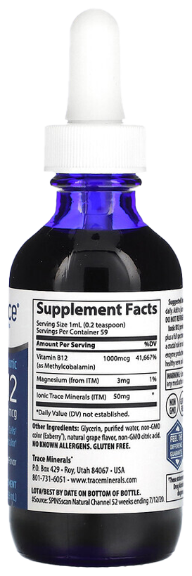 Trace Minerals Ionic B12, Ионный Б12, 59 мл