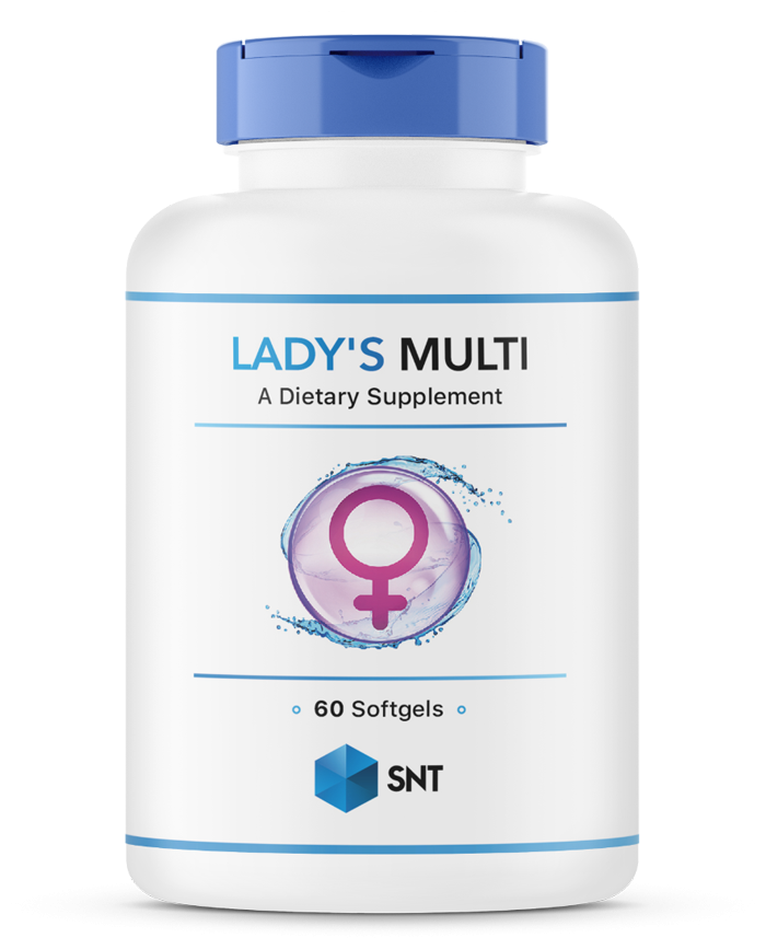 SNT Lady Multi - мультивитаминный комплекс, созданный для поддержания и укрепления женского здоровья. Витамины и минералы в оптимальном сочетании насыщают организм питательными веществами и оказывают положительный эффект на репродуктивную систему. Натуральные растительные экстракты и масла в составе комплекса улучшают обменные процессы и способствуют укреплению иммунитета.
