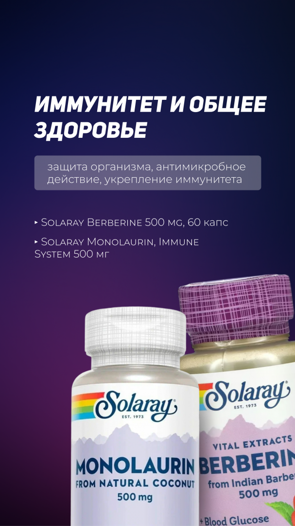 Solaray BERBERINE: Растительный экстракт для поддержки здорового уровня сахара в крови и метаболизма.