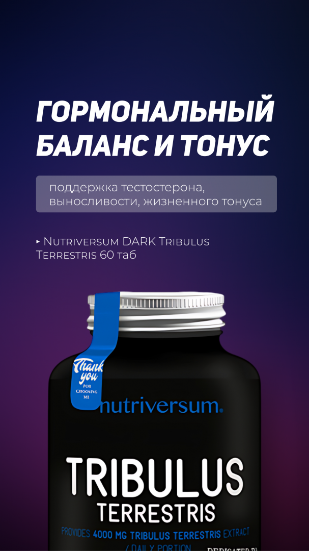 Nutriversum DARK TRIBULUS TERRESTRIS: Растительная добавка для поддержки выносливости и общего жизненного тонуса.