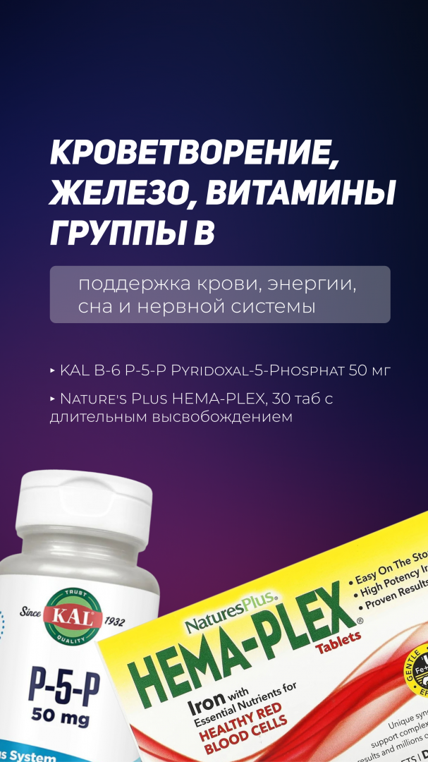 Nature's Plus HEMA-PLEX: Мощный комплекс с железом длительного высвобождения для поддержки кроветворения и борьбы с усталостью.